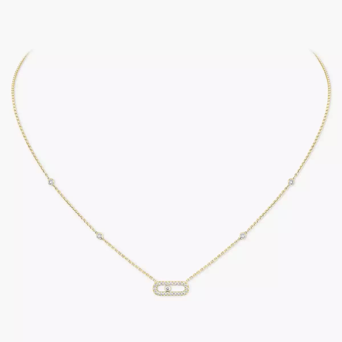 A sleek and contemporary interpretation of Messika’s iconic design, the Messika Move Uno Pavé Necklace 04708-YG in 18K yellow gold highlights a single pavé-set diamond motif that radiates understated elegance. The central 0.20 carat diamond sits within a refined 15 mm × 5 mm pattern, catching light with every movement. Suspended on a 45 cm chain with five closure rings, this necklace combines versatility with timeless sophistication, perfectly framing the neckline for both everyday wear and special occasions.