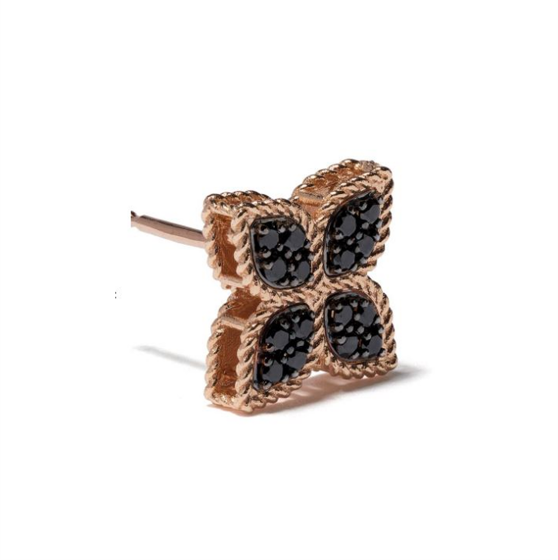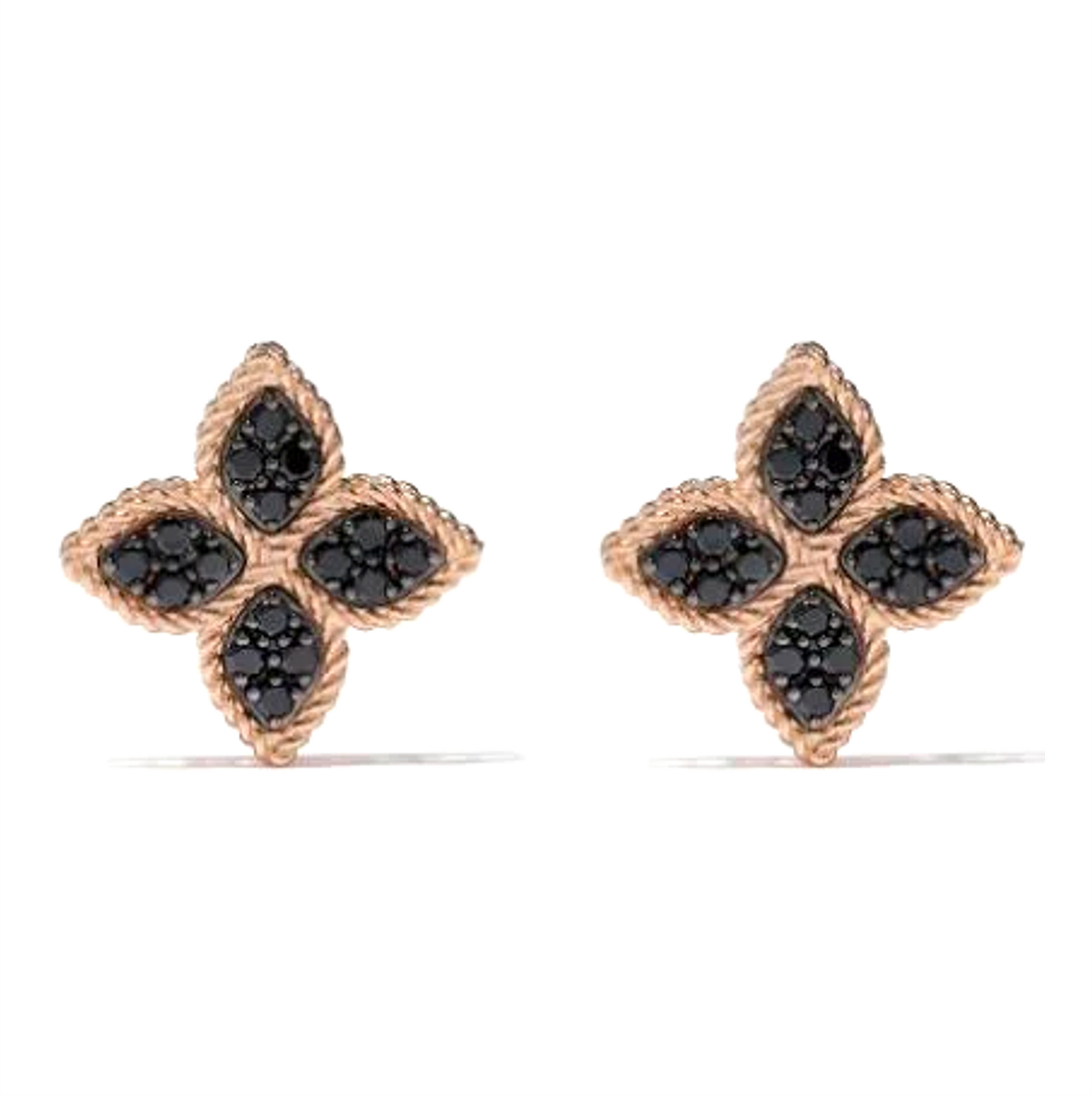 Roberto Coin PRINCESS FLOWER EARRINGS WITH BLACK DIAMONDS