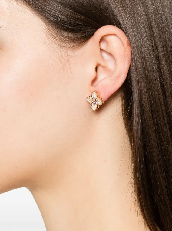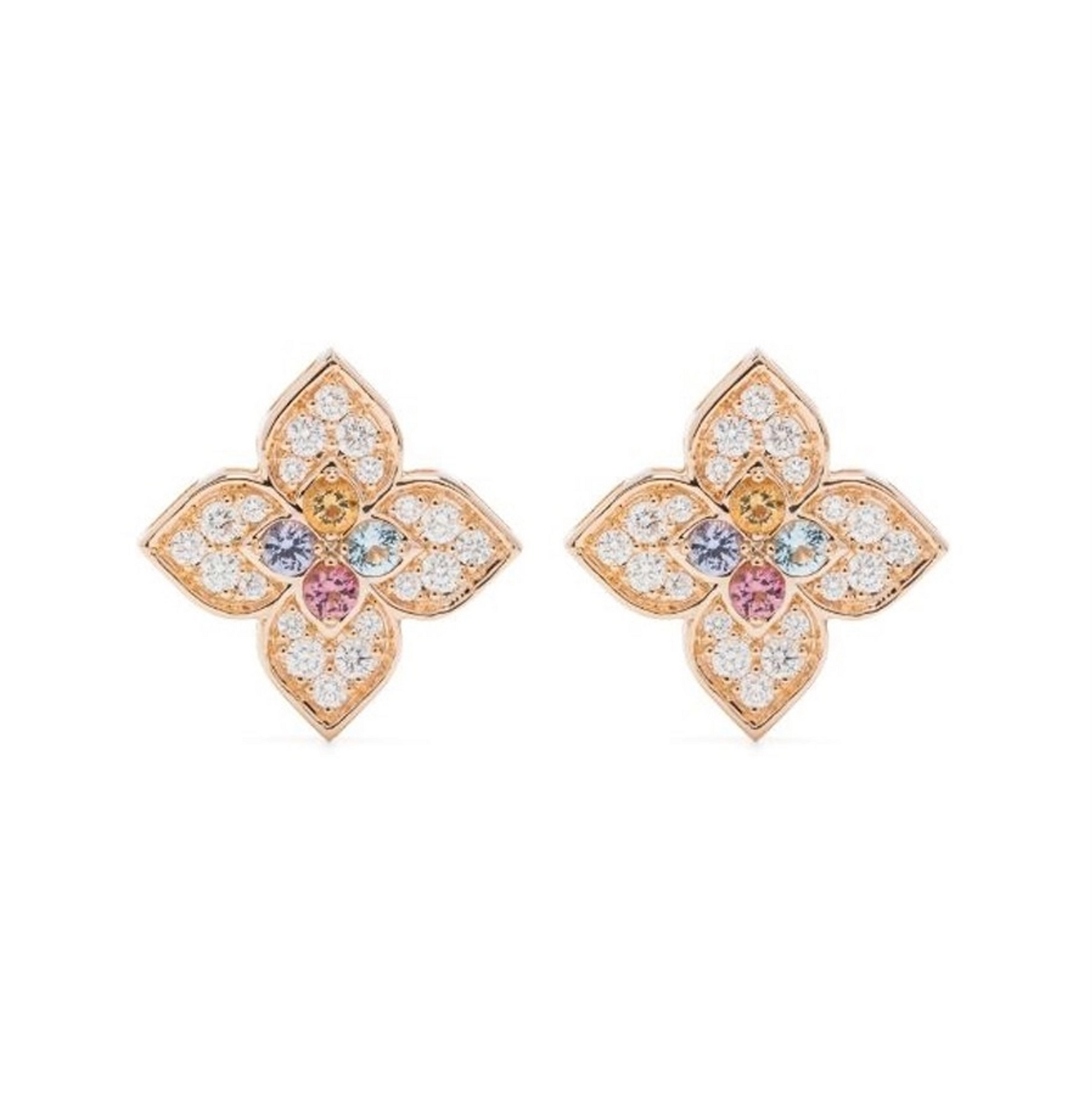 - Design: Stud earring with butterfly back fastening, floral (“Princess Flower”) motif, handcrafted in Italy, combining pavé brilliance and colorful gemstone petals in a compact yet richly detailed form.