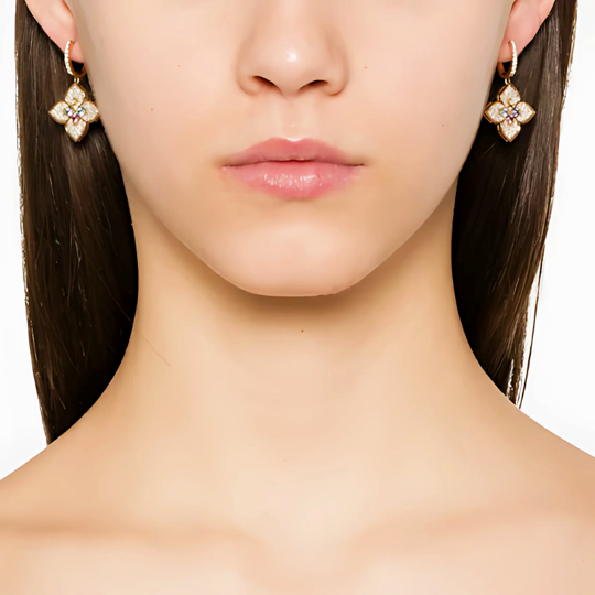 Roberto Coin PRINCESS FLOWER EARRINGS WITH DIAMONDS AND MOTHER OF PEARL