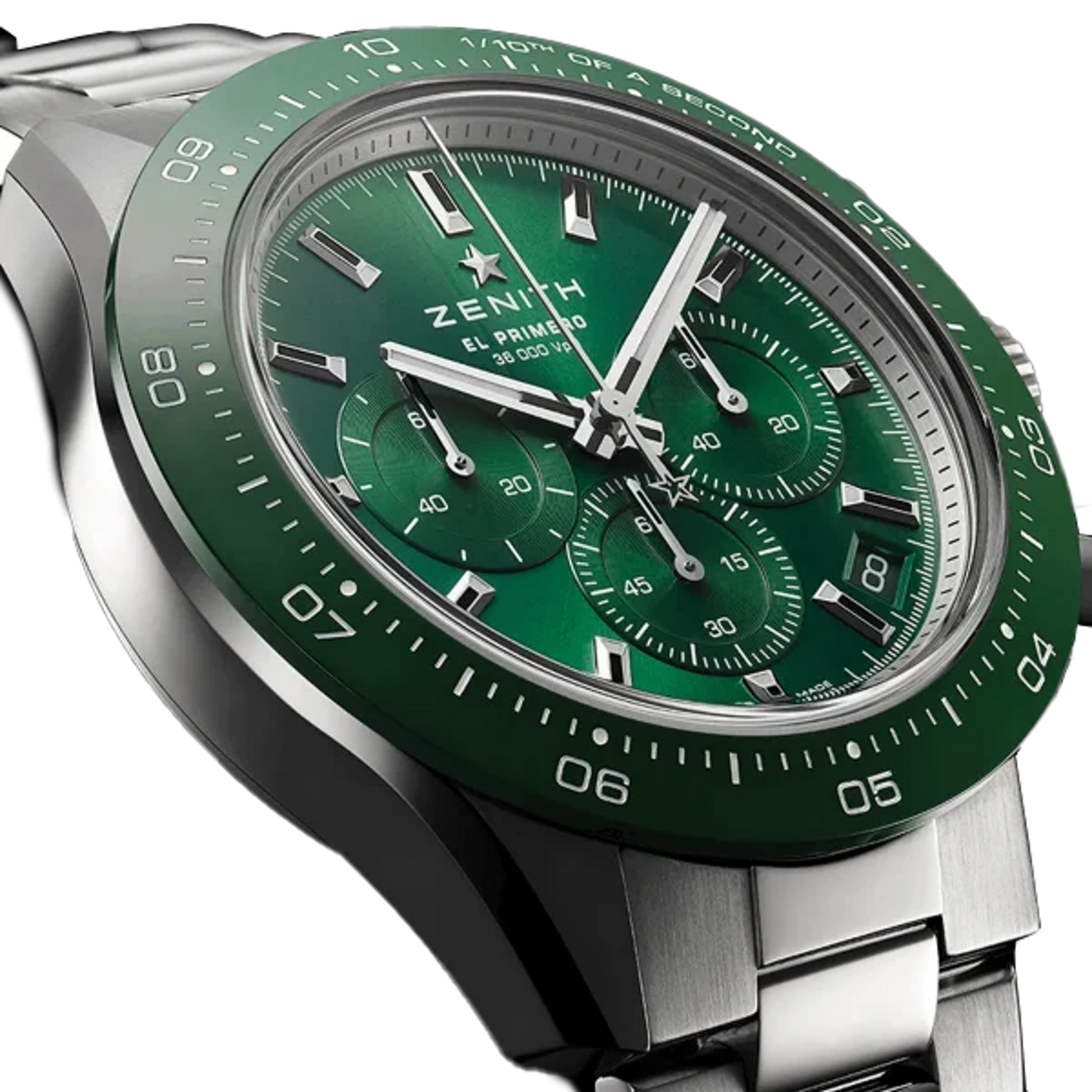 - Movement (Calibre): El Primero 3600 manufacture automatic chronograph; high‑frequency 36,000 vph (5 Hz); 1/10‑second chronograph with central 10‑second scale; small seconds; date between 4 and 5 o’clock; approx. 60 h power reserve.