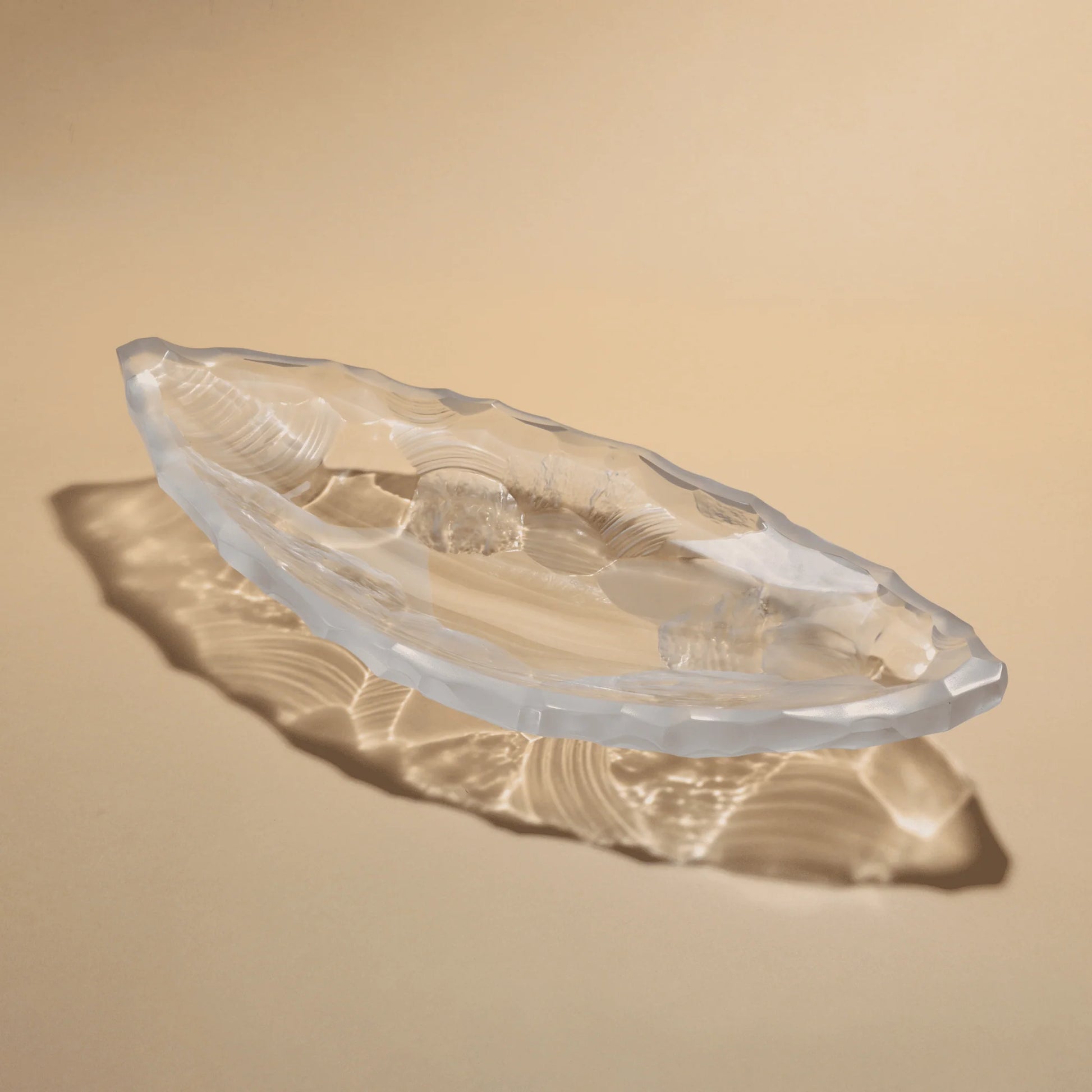 Its generous, faceted form and satin-polished finish create a captivating play of light and depth.