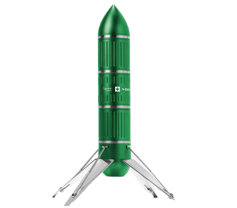 - Dimensions & Weight: Rocket approx. 28 cm (base diameter) × 33 cm (height); approx. 600 g without loupes and ~850 g with two loupe units