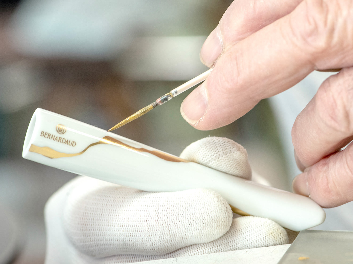 This refined set of two table knives embodies the Kintsugi – Sarkis spirit, blending strength and artistry. Featuring porcelain handles in black enamel adorned with 24-carat gold and Silver Mirror stainless steel blades, they bring contemporary sophistication and poetic elegance to any dining setting.