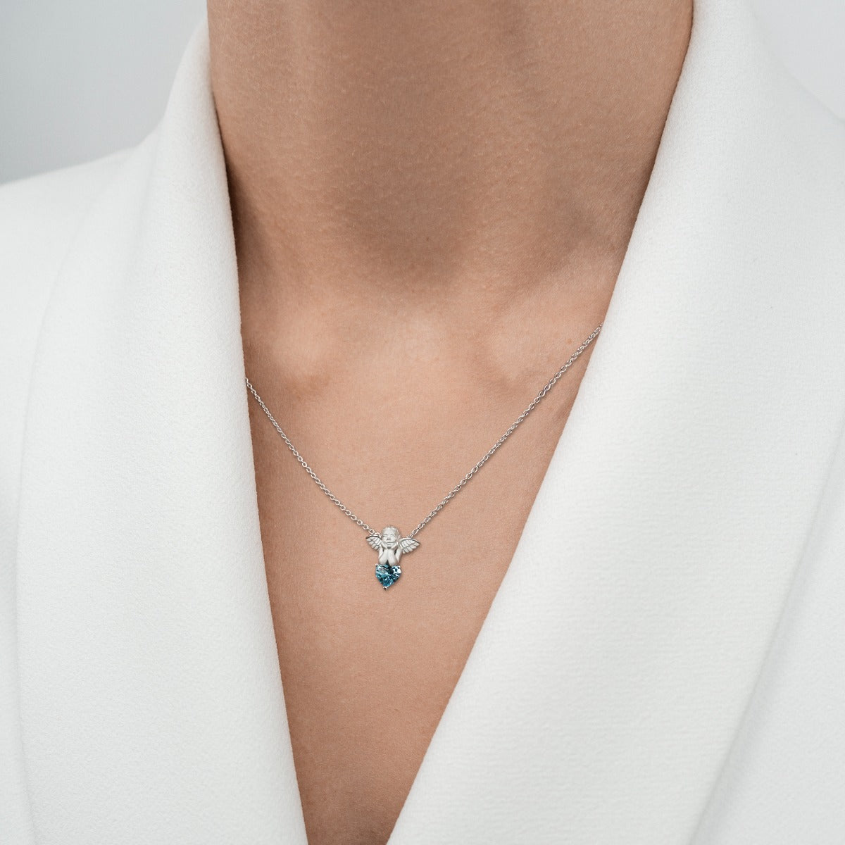 A luminous symbol of tenderness, the My Angel Heart 0145.2 necklace by Carrera y Carrera radiates with poetic simplicity. Crafted from 18 KT white gold, it showcases a captivating heart-shaped blue topaz (0.47 ct) that shimmers with serene brilliance. The refined contours of the pendant highlight the purity of the gemstone, while the delicate chain offers a graceful balance of modern elegance and timeless emotion — a piece designed to rest close to the heart.