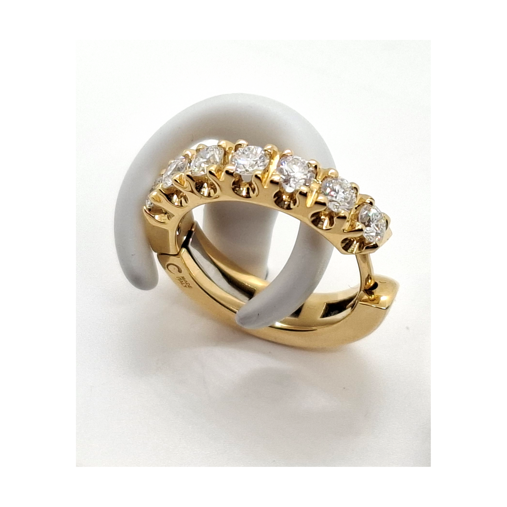 A luminous expression of contemporary refinement: these Crivelli earrings embody effortless sophistication with a modern edge. Crafted in radiant 18K yellow gold, the elegant hoop silhouette is enhanced by a meticulous pavé of brilliant-cut diamonds, creating a continuous shimmer that delicately follows the curve of the design. Refined yet striking, they offer a harmonious balance between everyday elegance and evening brilliance.