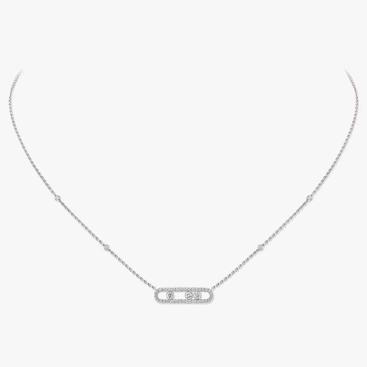 A refined blend of timeless elegance and radiant brilliance, the Messika Baby Move Pavé Necklace 04322-WG in 18K white gold is a delicate piece that magnifies the beauty of the central diamonds through a pavé-set diamond setting. Designed by Valérie Messika, this necklace embodies the essence of modern luxury with a classic twist.
