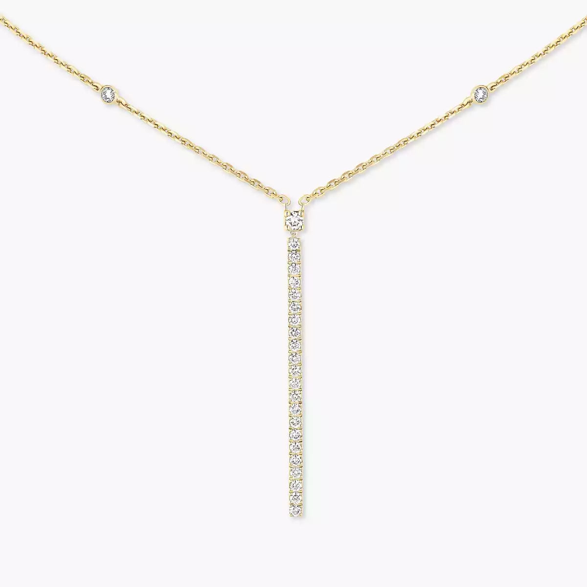 A refined blend of timeless elegance and radiant brilliance, the Messika Gatsby Vertical Bar Necklace 05448-YG in 18K yellow gold is a delicate piece that magnifies the beauty of the central diamonds through a pavé-set diamond setting. Designed by Valérie Messika, this necklace embodies the essence of modern luxury with a classic twist.