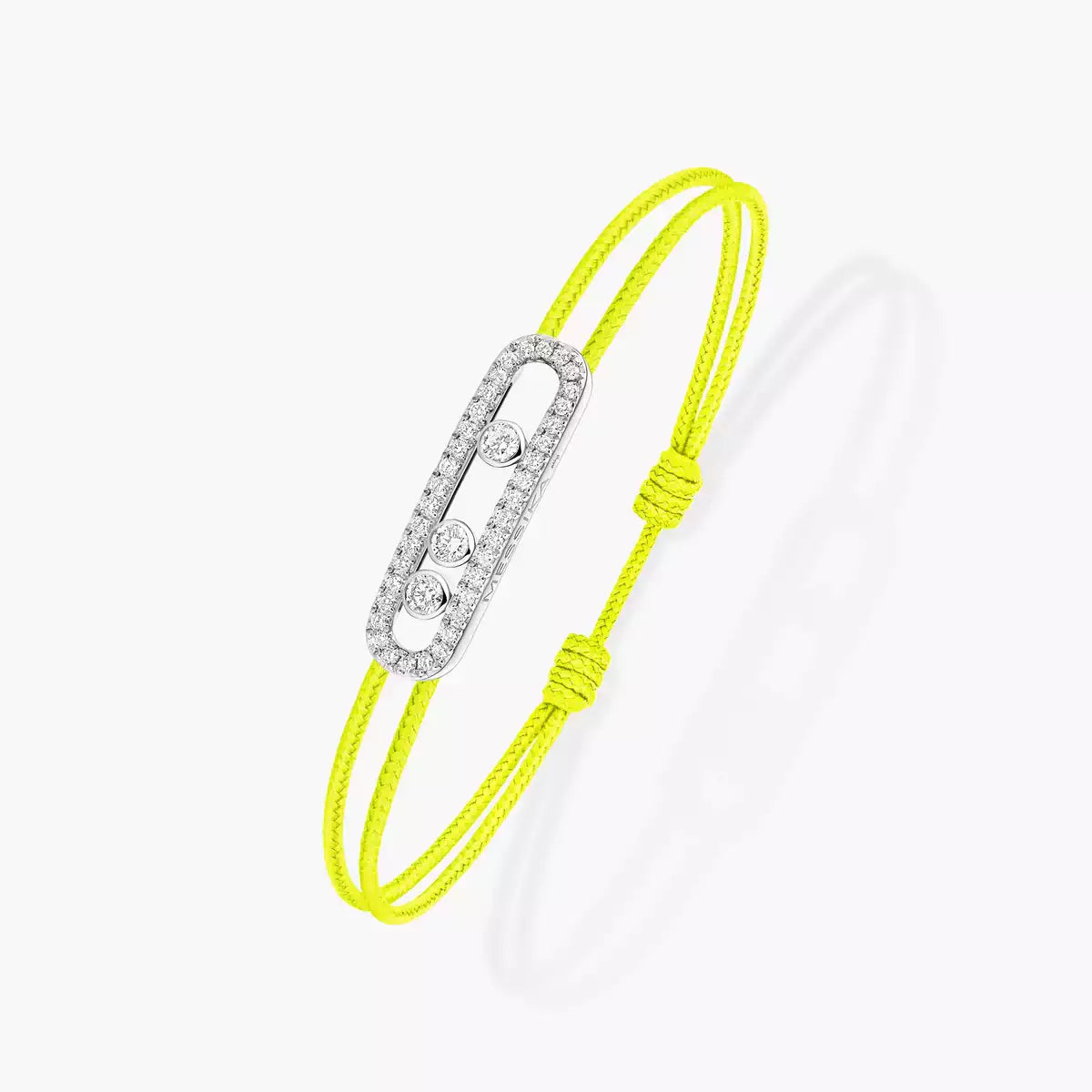 A radiant fusion of joie de vivre and meaningful design, this Messika CARE(s) bracelet pairs luminous white gold with a vivid neon yellow cord for an effortless yet striking aesthetic. At its heart, Messika’s signature Move motif is reimagined with a pavé of brilliant white diamonds that catch the light from every angle, while three iconic floating diamonds add dynamic sparkle with movement. More than just a jewelry piece, it embodies a spirit of commitment—supporting charitable initiatives through the Valérie Messika Foundation with every purchase—making it both a sophisticated accent and a symbol of generosity.