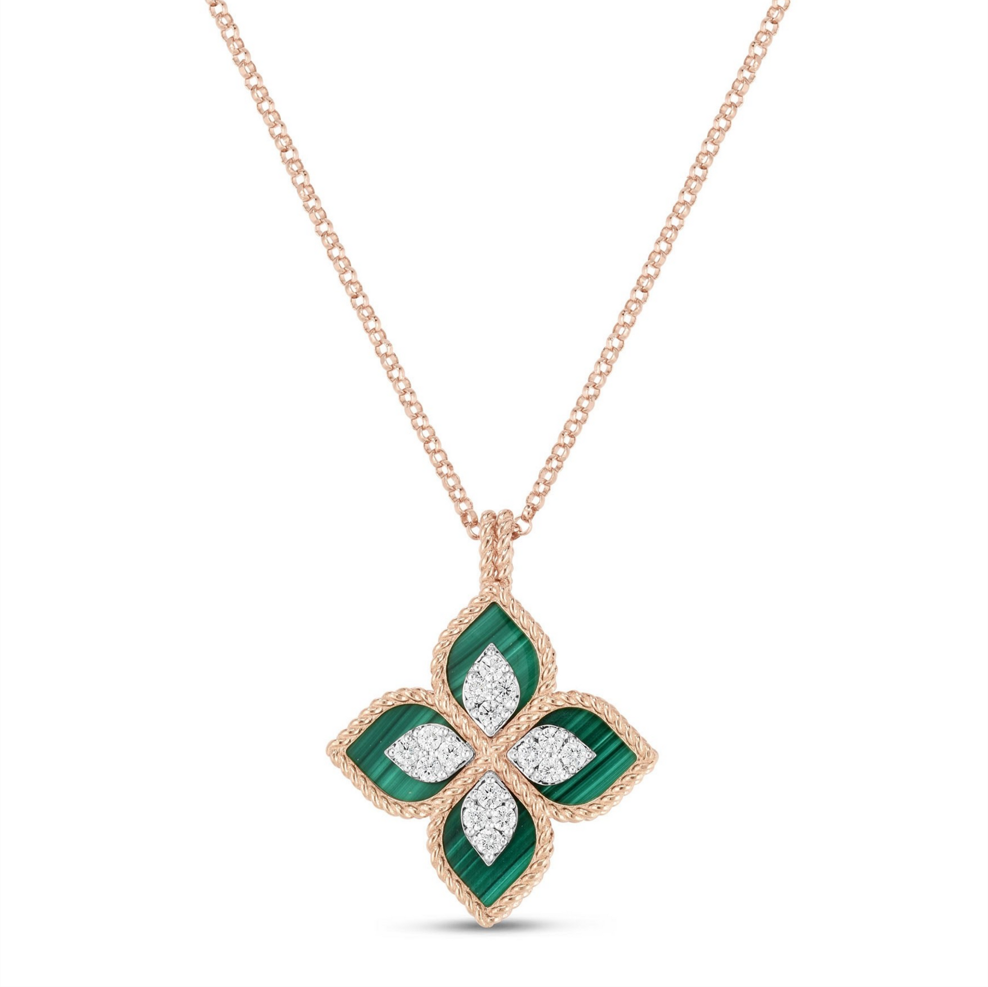 Roberto Coin PRINCESS FLOWER PENDANT WITH DIAMONDS AND MALACHITE