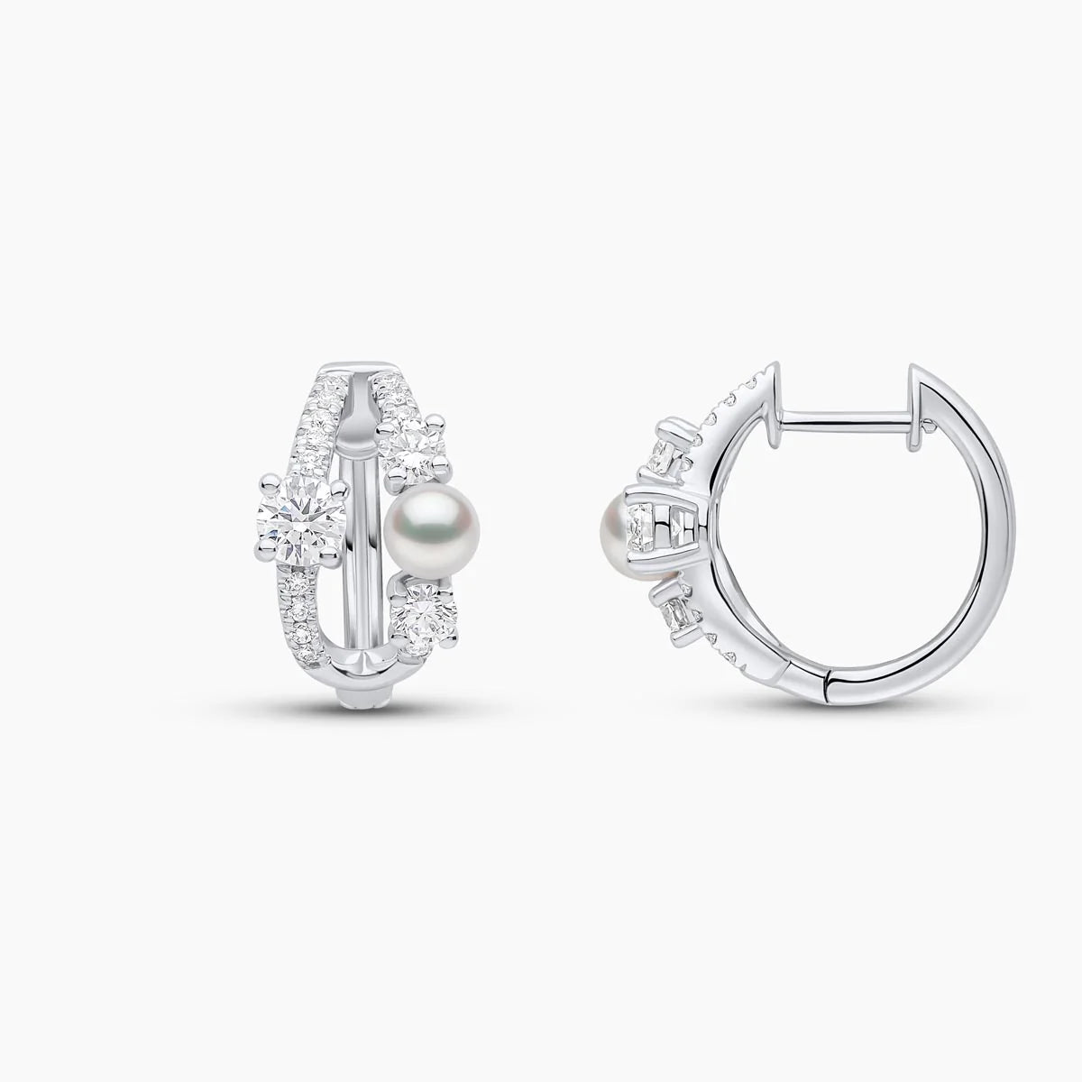 Yoko London BABY GLITZ AKOYA PEARL AND ROUND CUT DIAMOND HOOP EARRINGS