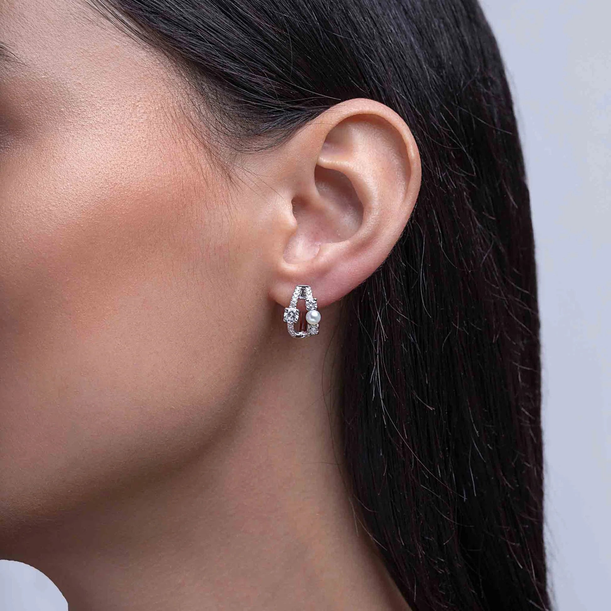 - Style: Hoop earrings with illusion double-hoop and pearl drop elegance